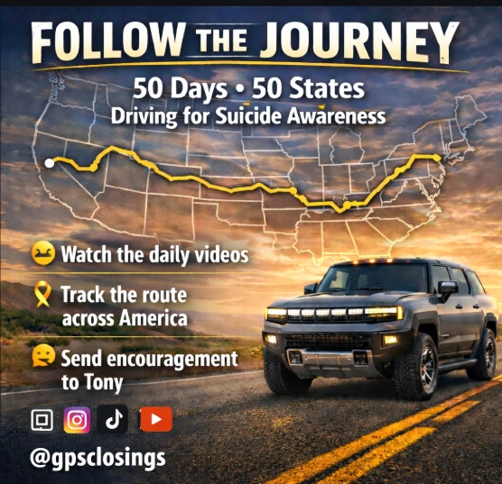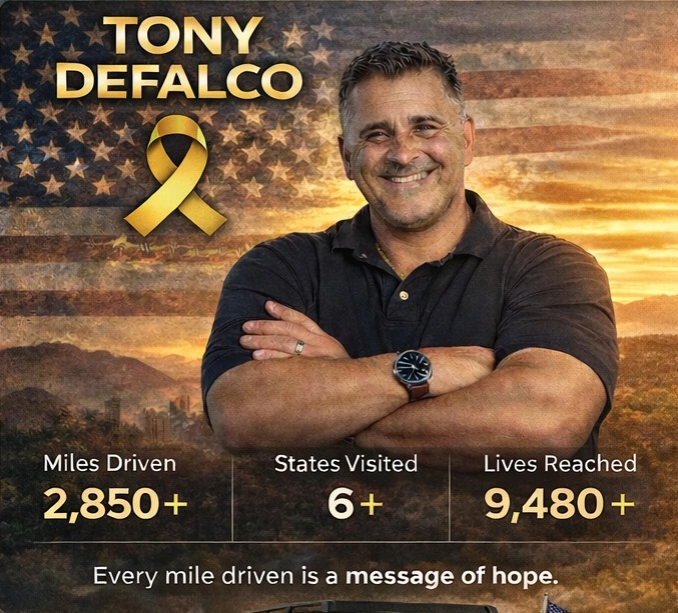In November of 2000, Tony DeFalco lost his father, David Franklin DeFalco Sr., to suicide. Like many families affected by suicide, the loss left a deep and lasting impact. For years it was something that wasn’t openly discussed. But Tony believes that silence is part of the problem. Too many people struggle alone. Too many families experience the same heartbreak. So Tony decided to turn that loss into purpose. He began a 50-state journey across America in 50 days to raise awareness about suicide prevention and mental health. Every mile is dedicated to starting conversations that could help save lives.